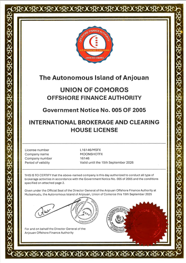 Registration Number: L16146/MSFX https://anjouanoffshorefinanceauthority.org/register/moonshotfx/